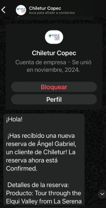 Tur.com envía la notificación de reserva por 3 vías: mail, whatsapp y triparound.