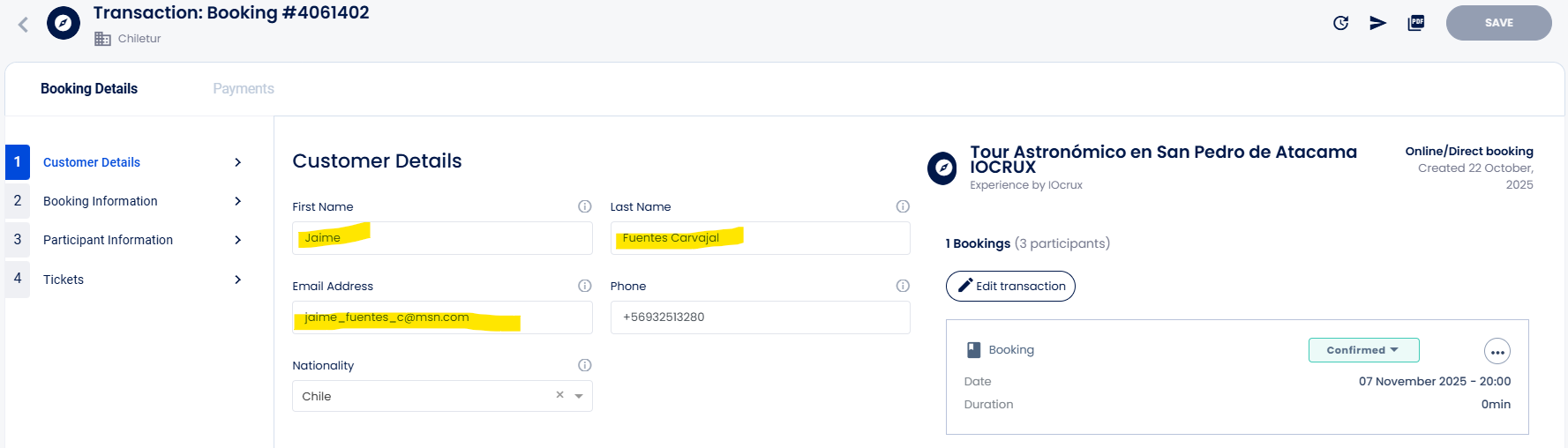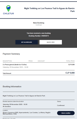 2. Mail: Asunto "New booking #000000"